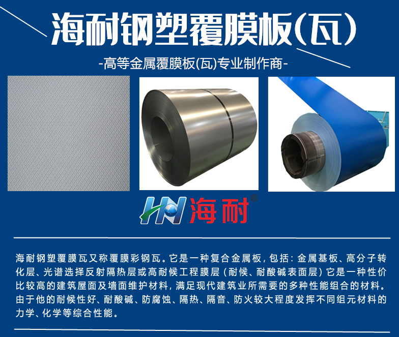 海耐覆膜彩鋼適用于工業(yè)廠房,民用建筑,糧食倉庫,鋼結(jié)構(gòu)廠房的建筑屋面、墻面材料。主要用于大型五金、化工廠、陶瓷廠、大型倉庫、批發(fā)市場、農(nóng)貿(mào)市場、畜牧養(yǎng)殖業(yè)、鑄造廠、電鍍廠、化肥廠、造紙廠等工業(yè)廠房鋼結(jié)構(gòu)廠房。(咨詢:0510-83326008)可以任意壓型、折彎、沖壓造型,可為建筑設(shè)計師提供無限創(chuàng)意空間,建造美麗獨特的建筑外衣、內(nèi)飾、創(chuàng)造完滿的視覺效果。所有部件均采用鋼性連接,可抗強臺風襲擊。重量輕便:對鋼構(gòu)的承重要求降低,施工難度小。易安裝:安裝方便,縮短施工周期,節(jié)約工程造價。隔熱效果高:高熱反射率使產(chǎn)品表面不吸熱,即使在夏天板面也不燙手,使建筑物內(nèi)溫度降6-8度。防腐性強:為高污染企業(yè)節(jié)約大量的人力、物力成本。自潔性高:具有抗靜電功能,表面光潔無須經(jīng)常清洗。壽命久遠:表面質(zhì)量可靠,內(nèi)在質(zhì)量始終如一。